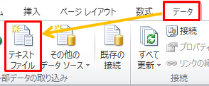 2.「データ」→「テキストファイル」をクリックして取り込むCSVを指定します。