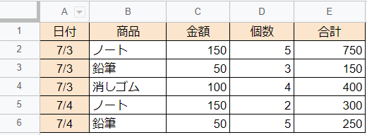 表2は、商品ごとに金額がある表です。マスターデータのイメージです。