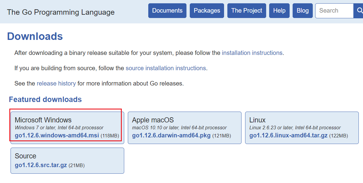 go version go1.12.6 windows/amd64