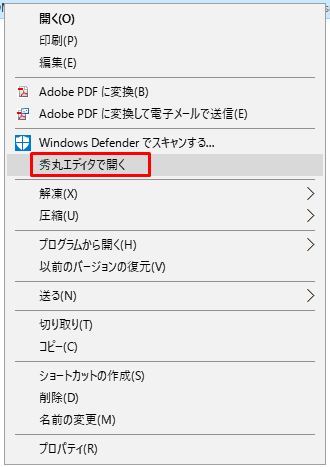 以下のように、右クリックで表示されるダイアログ直下に「秀丸エディタを開く」を追加する方法です。