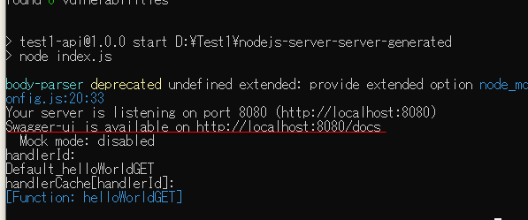 赤線の部分にSwagger UIを使用できるURLが表示されます。