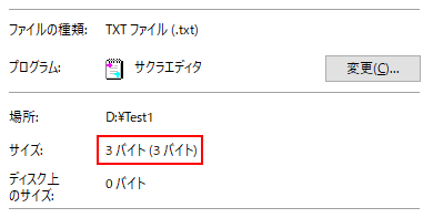 2.ファイルのプロパティでファイルサイズを見ると3バイトになっています。