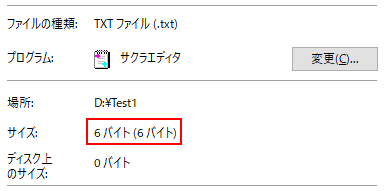 2.ファイルのプロパティでファイルサイズを見ると6バイトになっています。