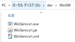 exeはWinSW.NET4.exeのファイル名をWinService1.exeに変更します。