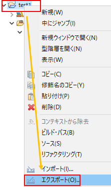 2.プロジェクトを右クリックし「エクスポート」をクリックします。