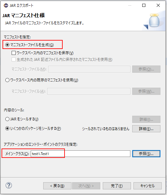 「D:\testJar1.jarにメイン・マニフェスト属性がありません」