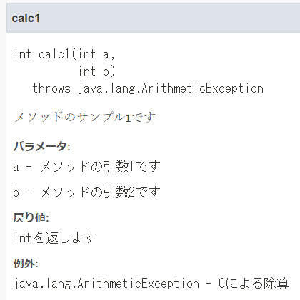 JavaのJavadocの書き方のサンプルです。(確認環境:Java, Eclipse, STS)