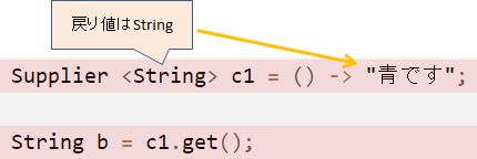 8行目は、Supplierインターフェースを使用したラムダ式です。