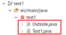 (その場合は、次のサンプルのTest1.javaの3,11,12行目はコメントにします。)