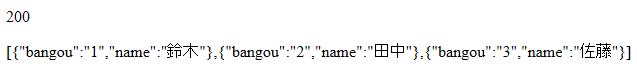 [{"bangou":"1","name":"鈴木"},{"bangou":"2","name":"田中"},{"bangou":"3","name":"佐藤"}]