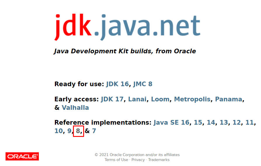 以下は、Oracle OpenJDKの8を取得する手順です。
