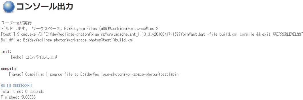 JenkinsからEclipseで作成したbuild.xmlを実行してJavaソースのコンパイルを行います。