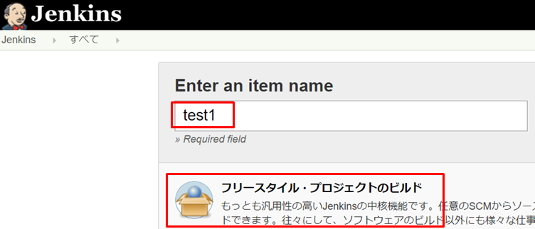 2.名称を入力し、「フリースタイル・プロジェクトのビルド」をクリックし、OKボタンを押します。