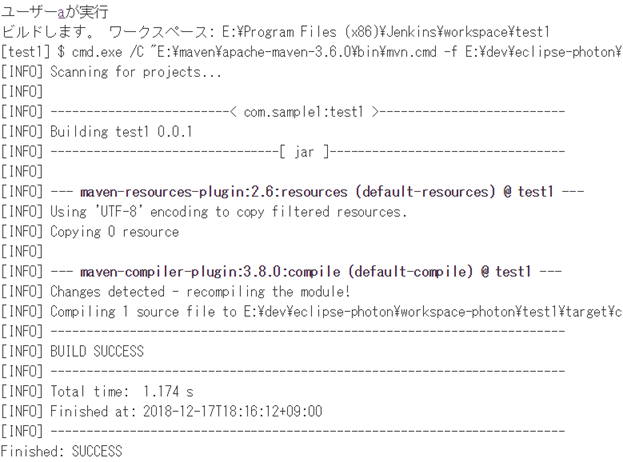JenkinsからEclipseで作成したpom.xmlを実行してJavaソースのコンパイルを行います。