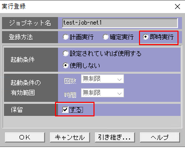 | ジョブネットを保留で実行登録する | |