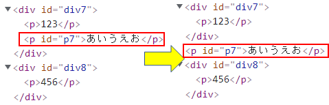 $("#p7").insertBefore("#div8");とした場合、<div id="div8">の前に移動します。