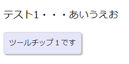 「テスト1」の文字の上にカーソルを当てるとツールチップが表示されます。