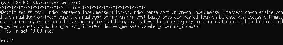 optimizer_switchの設定値を確認(@@optimizer_switch)