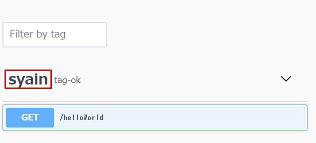 Swagger UIでは以下のように表示されます。メソッドはtagsの単位でまとまります。