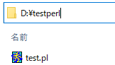 3.コマンドプロンプトでtest.plファイルがあるフォルダに移動し、perl ファイル名と入力すると実行されます。