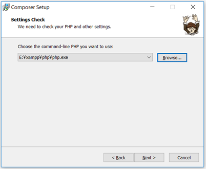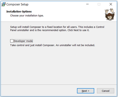 3.ダウンロードしたComposer-Setup.exeをダブルクリックするとsetupウィザードが立ち上がります。チェックせずにNextをクリックします。
