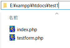 サンプルでは、E:\xampp\htdocsフォルダ配下にtest1フォルダを作成しその中に上記2ファイルを配置しました。