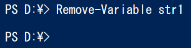 変数のクリアは、コマンドの入力で、Remove-Variable 変数名と入力します。
