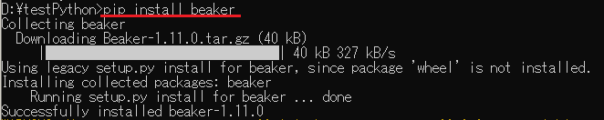 2.pipを使用してbeakerをインストールしています。