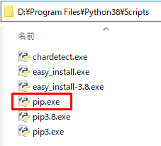 1.pythonをインストールしたフォルダのScriptsフォルダ配下にpip.exeがある必要があります。