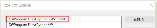 2.ユーザー環境変数のPATHに、上記フォルダ(Scripts)のパスを通します。