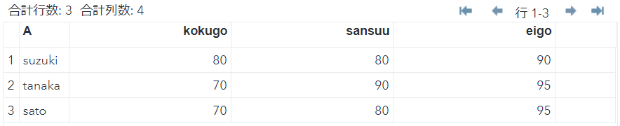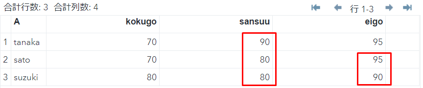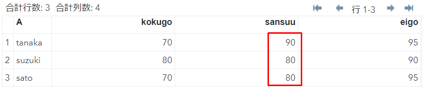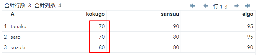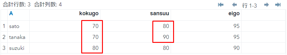 列kokugo,sansuuを昇順にして並び替えます。