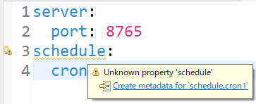 ymlファイルで警告が出る場合は、カーソルを当ててCreate metadata~をクリックします。