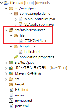 SpringBootのsrc/main/resources配下のファイルを読み込むサンプルです。