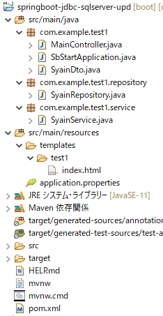 SpringBootとJDBCでSQLServerをinsert,update,deleteするサンプル