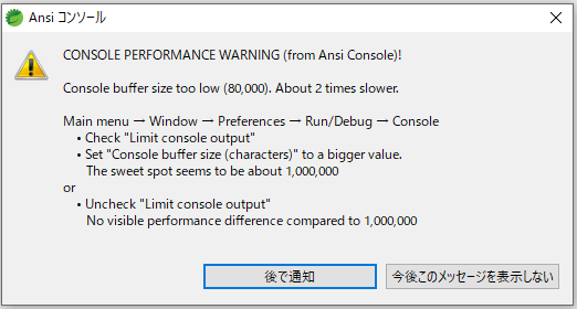コンソールパフォーマンスの警告 (Ansi コンソールから)