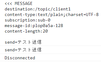 23行目の/topic/client1は、サーバからの受信先です。