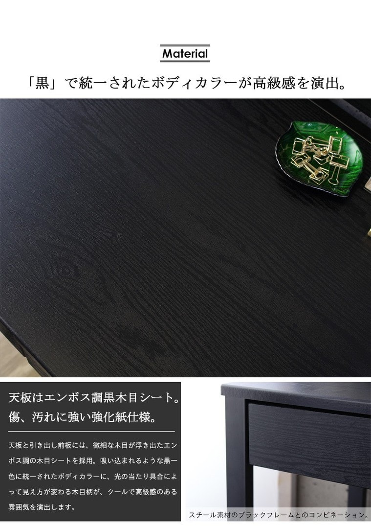色はブラックで、天板サイズは、幅110cm☓奥行45cmです。