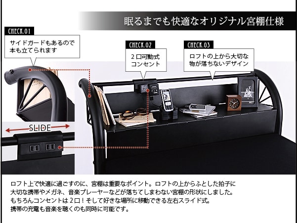 2.3段可動デスク付き&コンセント宮付きロフトベッド【Studio】ステューディオ
