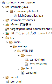 Spring MVCのWeb.xmlのerror-pageタグでエラーページを表示するサンプルです。