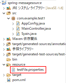 Spring5のプロパティファイルの文字列の引数に値をセットするサンプルです。