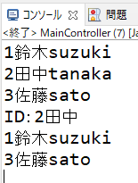 実行結果は、以下のようにDBから値を取得してコンソールに出力します。