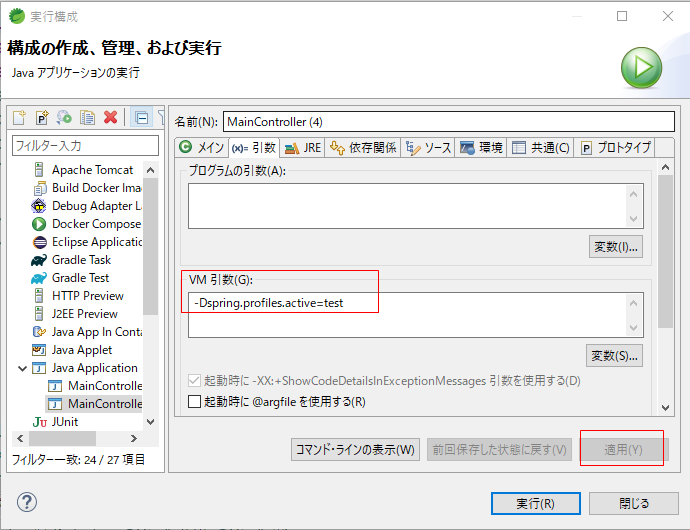 VM引数に上記のどちらか(-Dspring.profiles.active=xxx)を入力します。