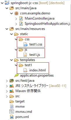 | サンプル | thymeleafでcssとjsファイルを使用して画面を表示する流れ |