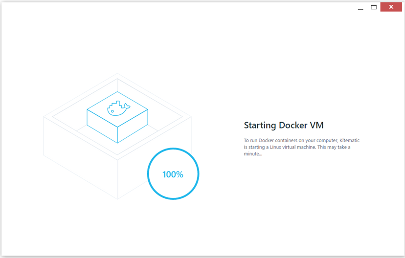 3.Docker VMの準備中の画面です。結構時間がかかります。5分くらいかかりました。