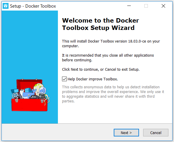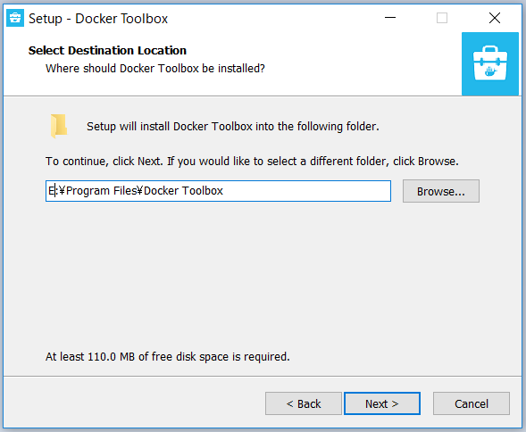 1.ダウンロードしたファイル(DockerToolbox.exe)をダブルクリックします。