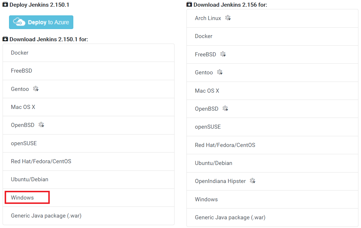 2.WindowsのリンクをクリックするとJenkinsのダウンロードが始まります。(jenkins-2.150.1.zip)