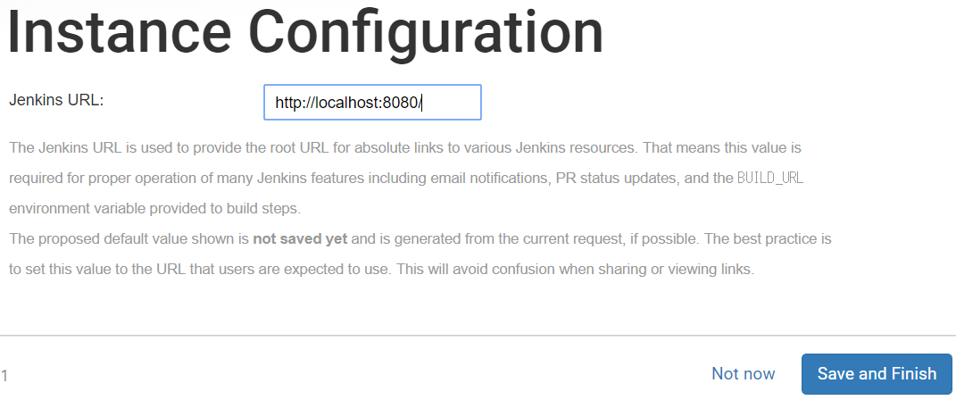 デフォルトは、http://localhost:8080/です。「Save and Finish」ボタンで保存します。