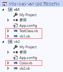 プロジェクトが2つあります。vb1とvb2です。
