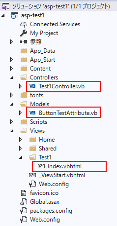 1.Index.vbhtmlにボタンが2つあり、ボタンを押すとTest1Controller.vbへ送信します。