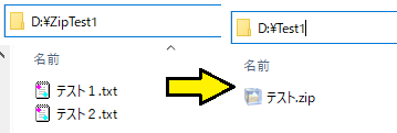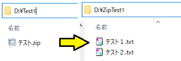 11行目は、Falseにすると解凍後のフォルダ名は6行目のファイル名のテストです。Trueにすると5行目のZipTest1になります。